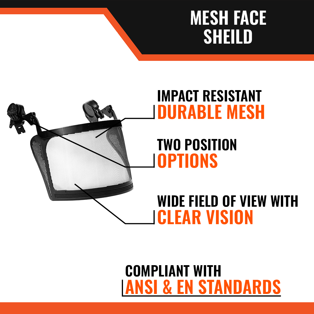 The Mesh Face Shield seamlessly integrates into Malta Dynamics APEX Safety Helmets, and with the included mounting clips, the face shield effortlessly slots into dedicated side accessory mounting slots, ensuring a secure and stable attachment. Rigorously tested to meet ANSI/ISEA Z87.1-2020 standards, this safety face shield guarantees compliance.